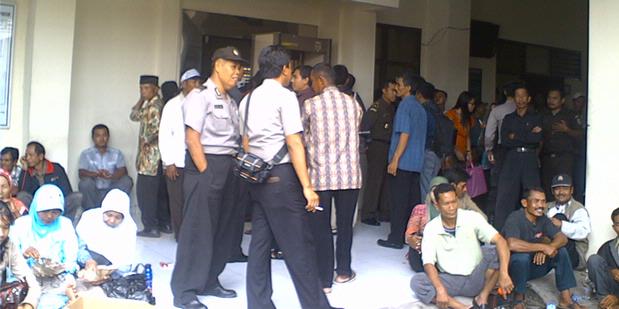Dalam sidang yang mulai digelar siang ini, sejumlah massa tampak memenuhi gedung Pengadilan Negeri Semarang. Mereka bukan hanya dari pendukung Untung Wiyono, namun juga pendukung Agus Faturachman. "Kami memberikan dukungan moril karena Pak Bupati, dikabarkan akan ditetapkan sebagai tersangka," kata Tri Susilo, salah satu pendukung Agus.